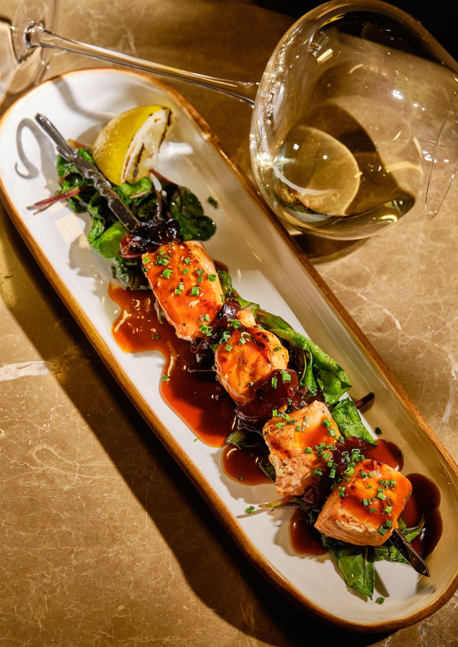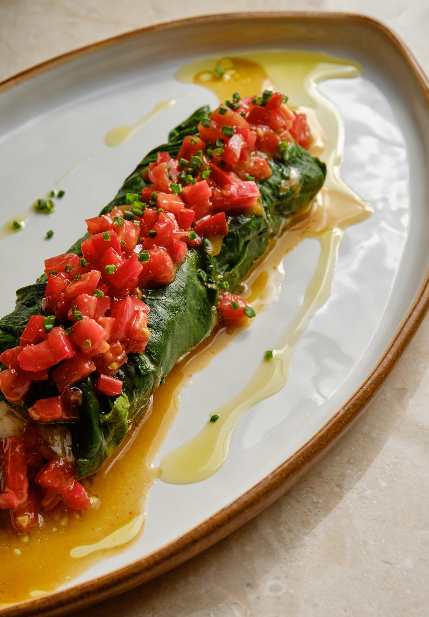 Сибас в листьях шпината